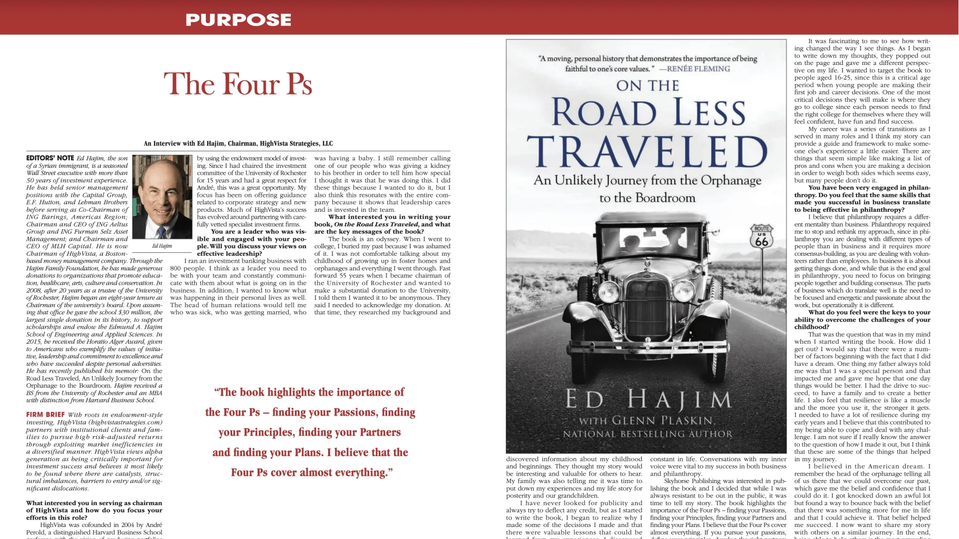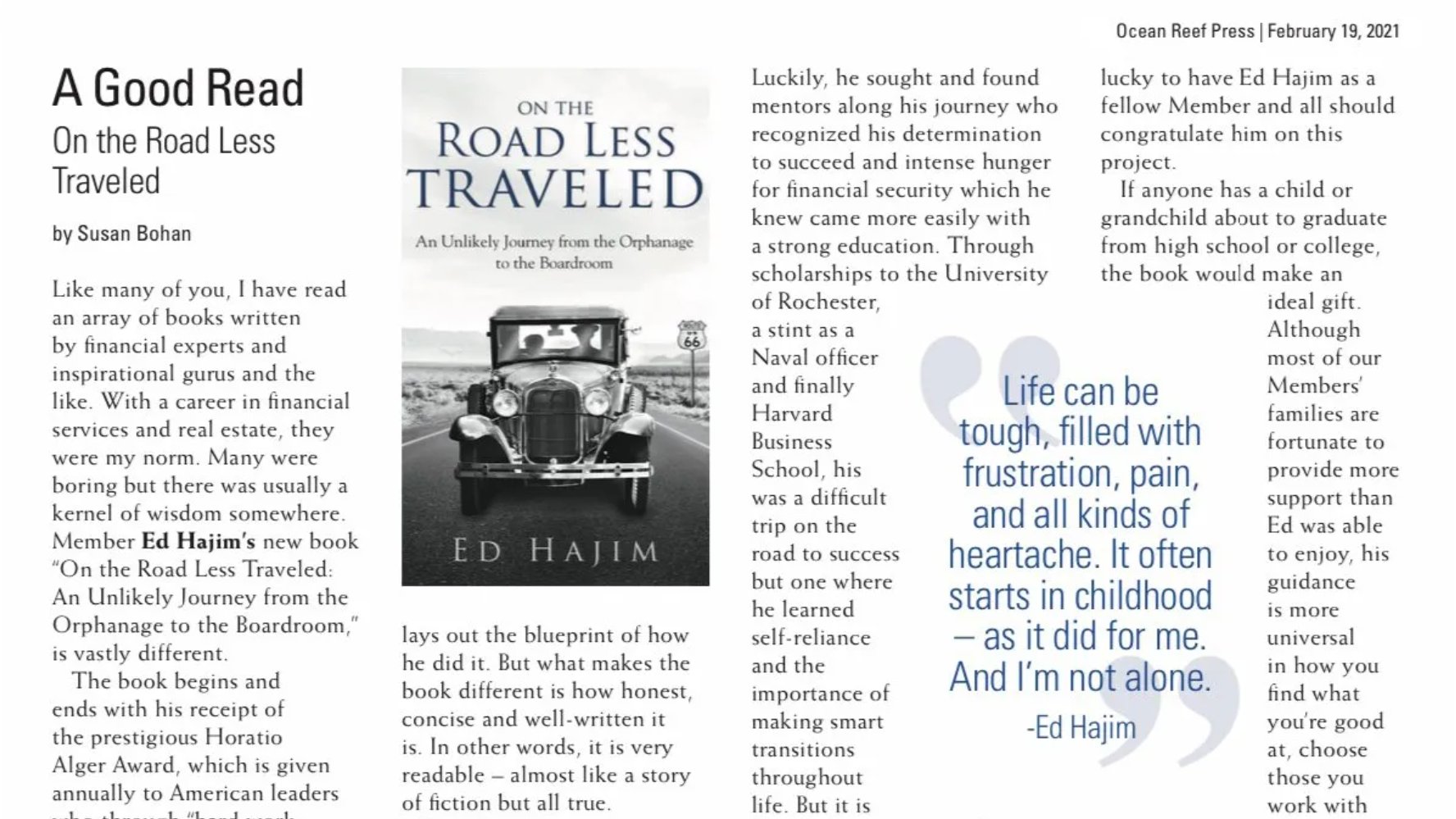 interviewed Ed Hajim, author of On The Road Less Traveled - An Unlikely Journey from the Orphanage